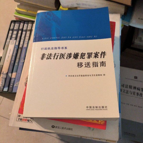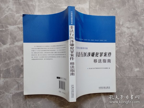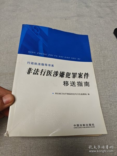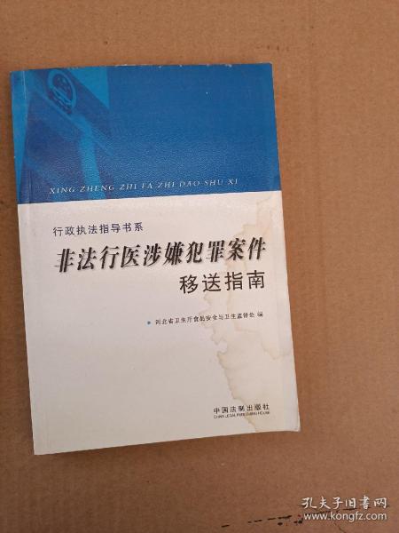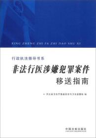 为了提高基层卫生行政执法人员办理移送涉嫌犯罪案件的水平,加大非法行医涉嫌犯罪案件移送力度,河北省卫生厅食品安全与卫生监督处组织编写了《非法行医涉嫌犯罪案件移送指南》一书。《行政执法指导书系:非法行医涉嫌犯罪案件移送指南》以行政执法为主线、刑事法律为背景,以典型案例为突破口,着眼于非法行医涉嫌犯罪案件移送实务,使卫生行政执法与刑事司法两方面知识得到很好的融合与衔接《行政执法指导书系:非法行医涉嫌犯
