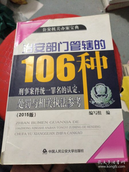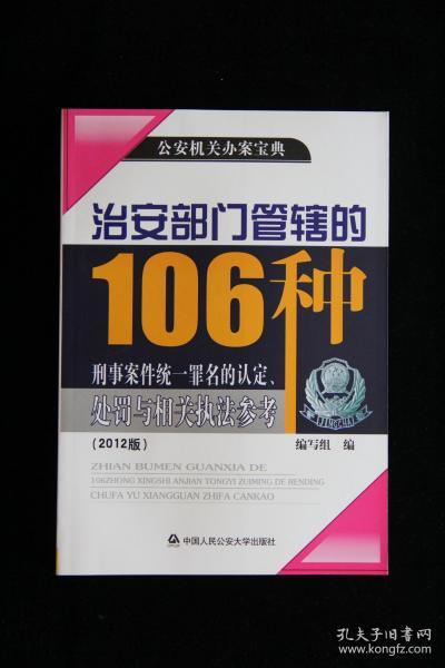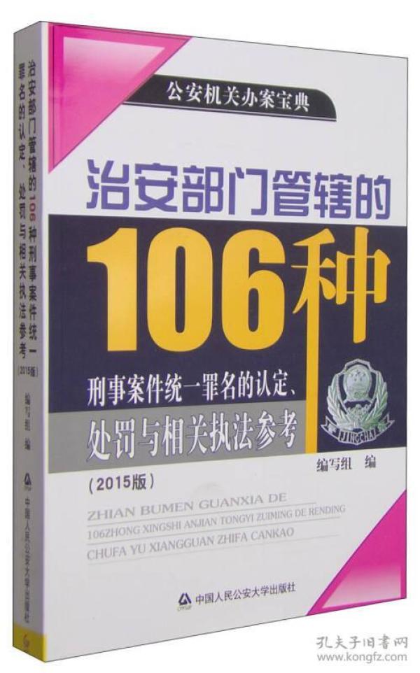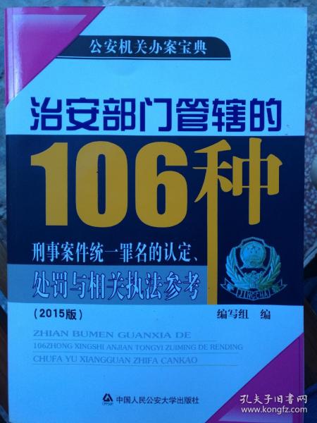 治安部门管辖的106种刑事案件统一罪名的认定、处罚与相关执法参考:2015版