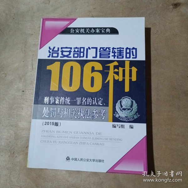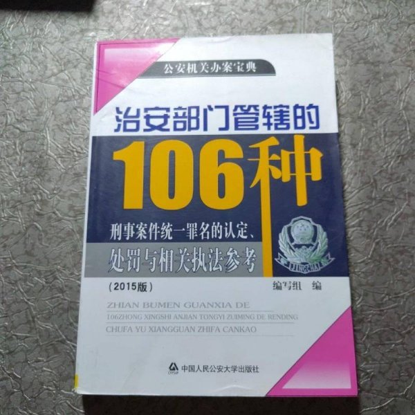 正版现货 治安部门管辖的106种刑事案件统一罪名的认定、处罚与相关执法参考:2015版