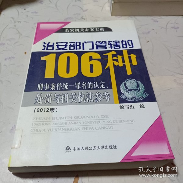 正版现货 治安部门管辖的106种刑事案件统一罪名的认定、处罚与相关执法参考