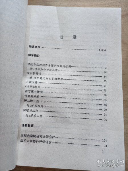 我们选编本丛书各文集的标准只有两个:一是学术性。所选文章应该是优秀的佛学或者关于佛教的研究著述。二是史料性。所选文章应该反映佛教在近现代中国历史中的某一特征,与当时的社会背景戚戚相关。由此而附带声明一句,所有文章都是特定历史条件下的产物,其遣词造句、发言主张当然有其所处时代的风格。除有的文集主人所发的议论与现实严重相悖而不能删节外,我们一般均作原文照录的处理。