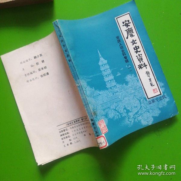 出版社 安庆文史资料》编辑部