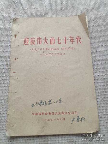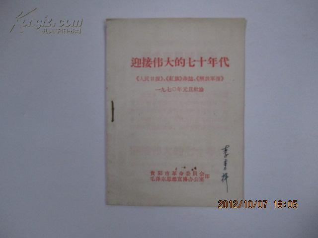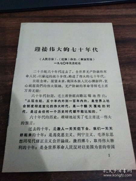 出版社 迎接伟大七十年代/山东人民出版社/1970