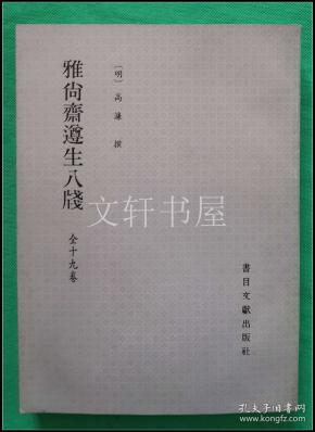 [明]高濂 撰 / 书目文献出版社 / 0198 / 平装