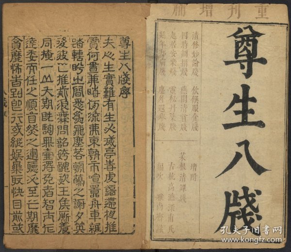 《遵生八笺》为明代高濂所着。这是一部供闲适消遣、养生玩物的著作,全书共十九卷,依次分为清修妙论、四时调摄、起居安乐、延年却病、饮馔服食、燕闲清赏、灵秘丹药、尘外遐举八笺。