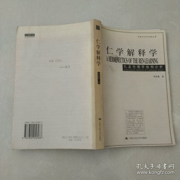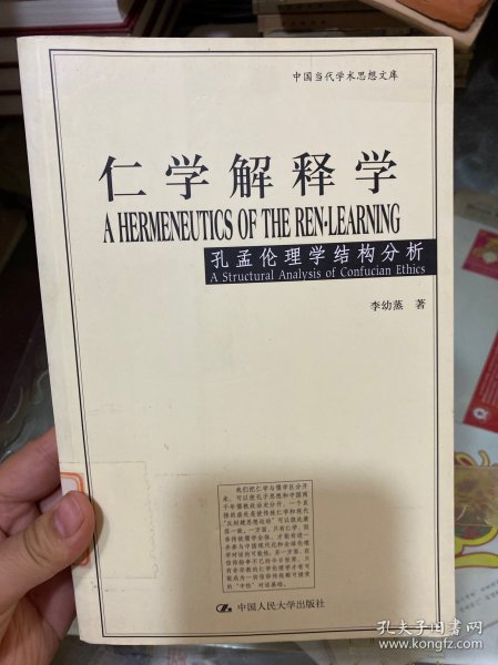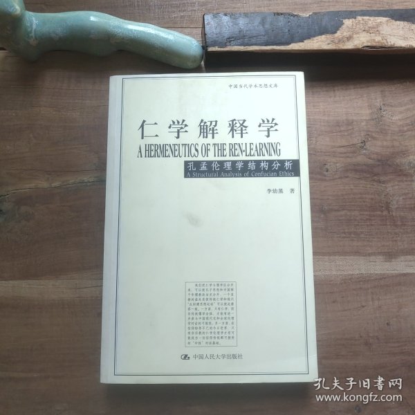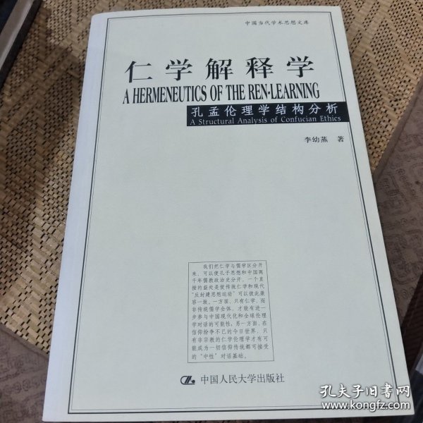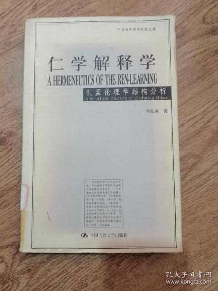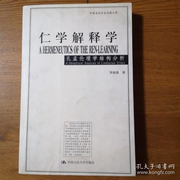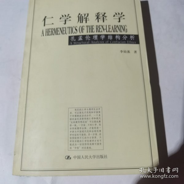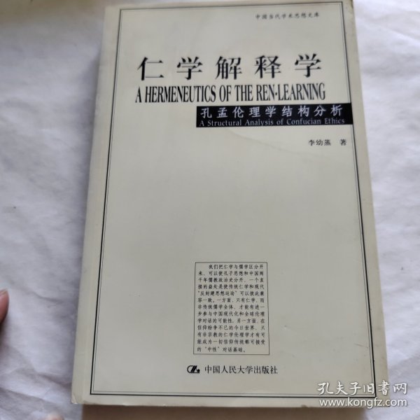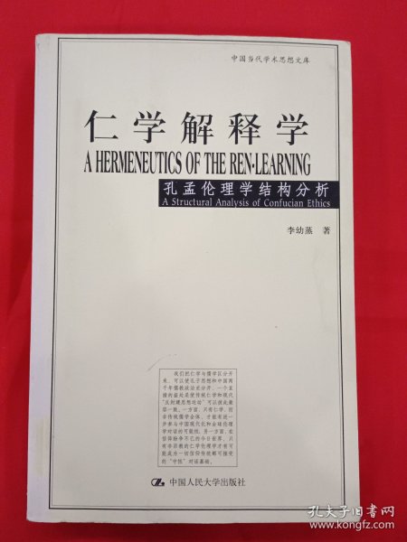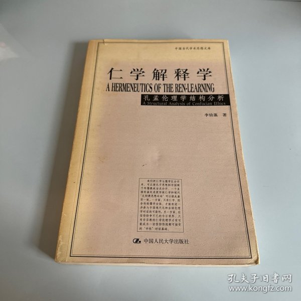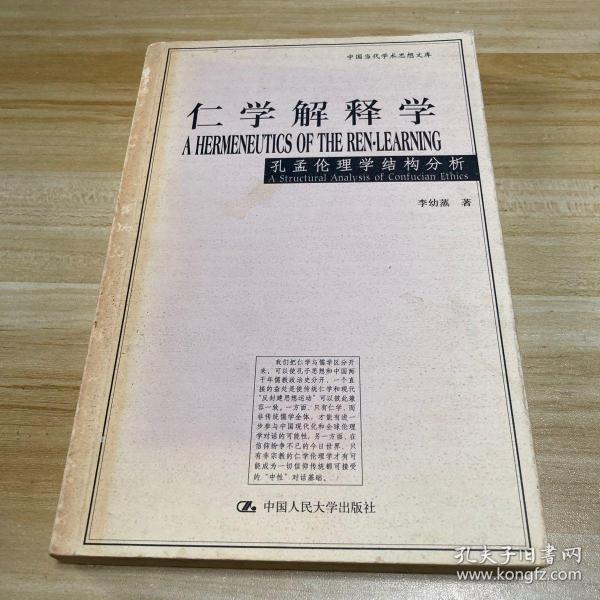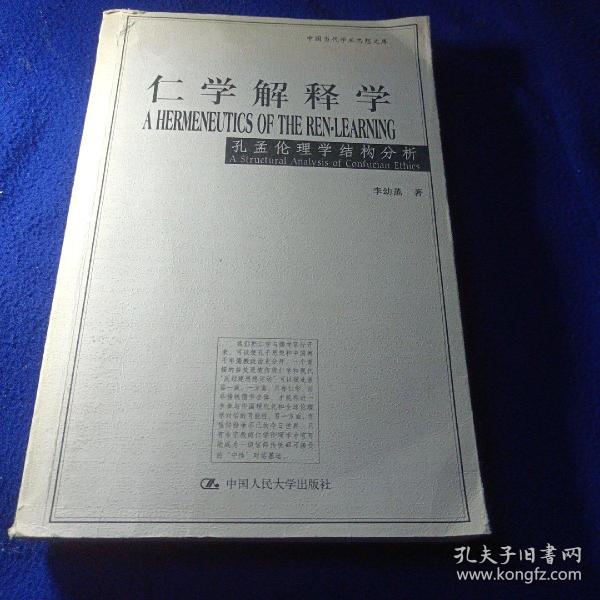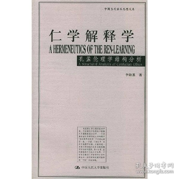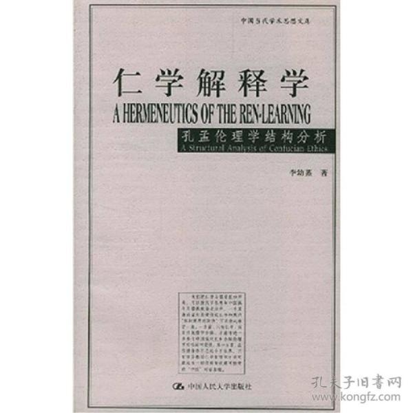 《仁学解释学:孔孟伦理学结构分析》以仁学和儒学相对比,用“仁学”一词专指孔孟伦理学,以区分于古代儒教经学和宋明理学。全书依据现代理论观念对仁学的结构、意义和功能提出了全新的解释,目的在于克服历来对孔孟学研究中存在的片面理解,以期较准确地提示原始仁学的肌理及其历史的和现代的意涵。作者本着40余年研究中西方中哲和现代西方理论的经验在《仁学解释学:孔孟伦理学结构分析》中提出的伦理学立