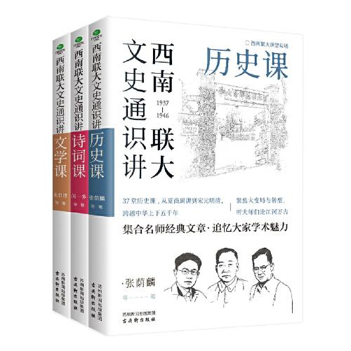《西南联大文史通识讲·历史课》精选西南联大教授的名篇,按照时间顺序通揽史学,共分为六章,自中华文明起始(夏、商、周)至清代为止,以点代面,还原历史的性情与温度。通过阅读文章,可以多层次启发读者,系统了解中国古代史。,《西南联大文史通识讲·诗词课》摘选五位西南联大教授的名篇,是汇集名师们的渊博之识、神奇之思的精华。从诗、词两大类出发,精选历朝著名诗人、词人,诗派、词派进行讲解,分