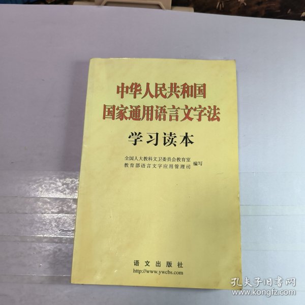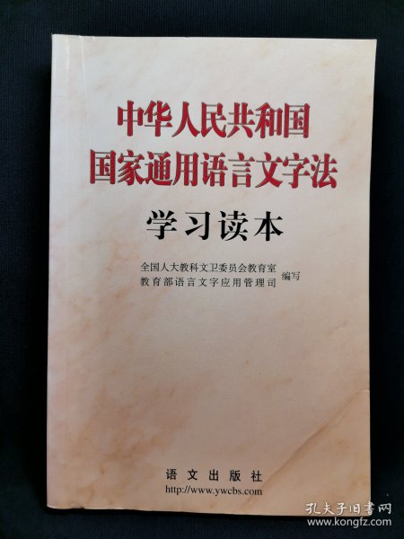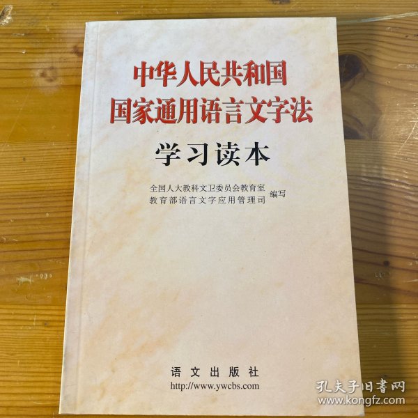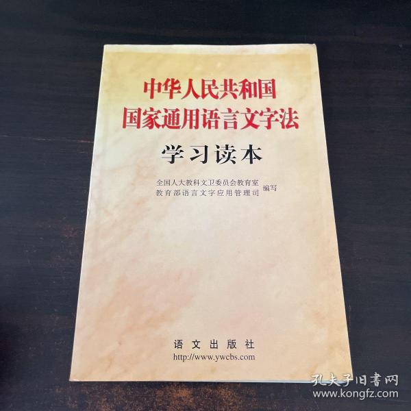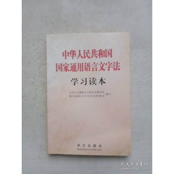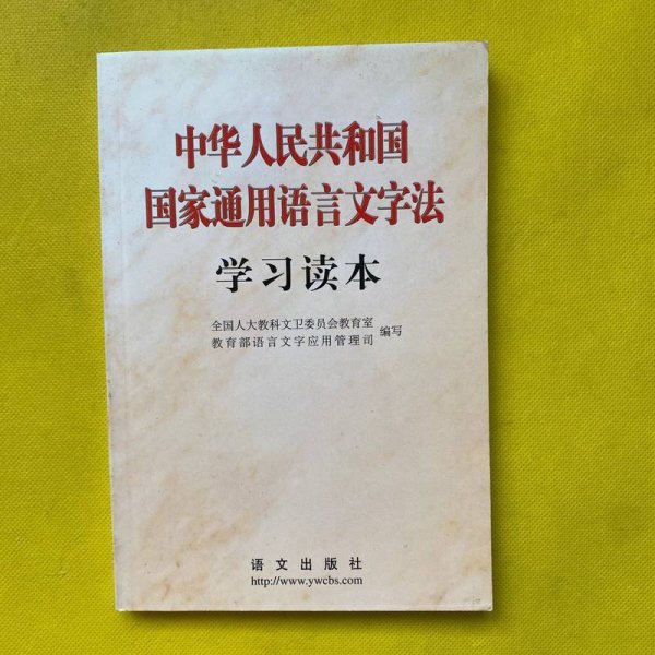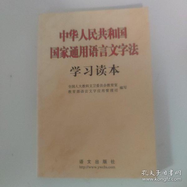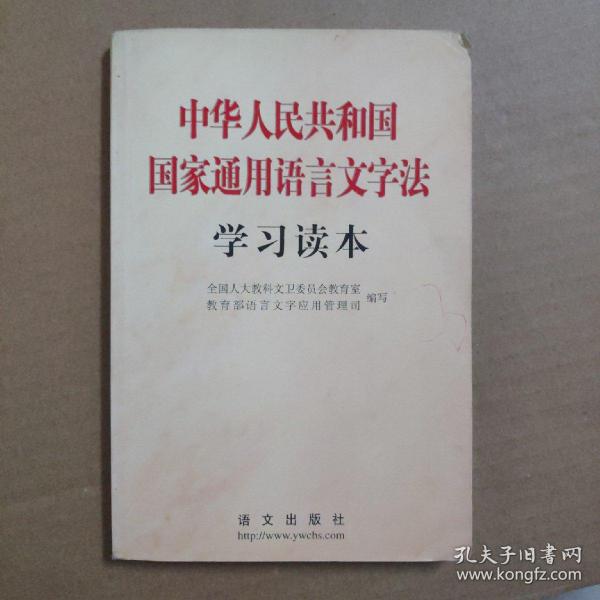 为了学习、宣传、贯彻好这部重要法律,全国人大教科文卫委员会教育室和教育部语言文字应用管理司编写了《中华人民共和国国家通用语言文字法学习读本》一书。全国人大常委会副委员长、民进中央主席行嘉璐同志担任本书顾问。全书由五个部分组成:一、《国家通用语言文字法》及有关文件;二、社论及评论员文章;三、《国家通用语言文字法》讲解;四、语言文字的规范与标准;五、资 料选编。