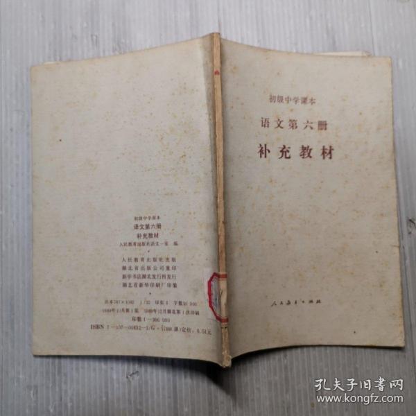 出版社 人民教育出版社 初级中学课本 第六册 补充教材