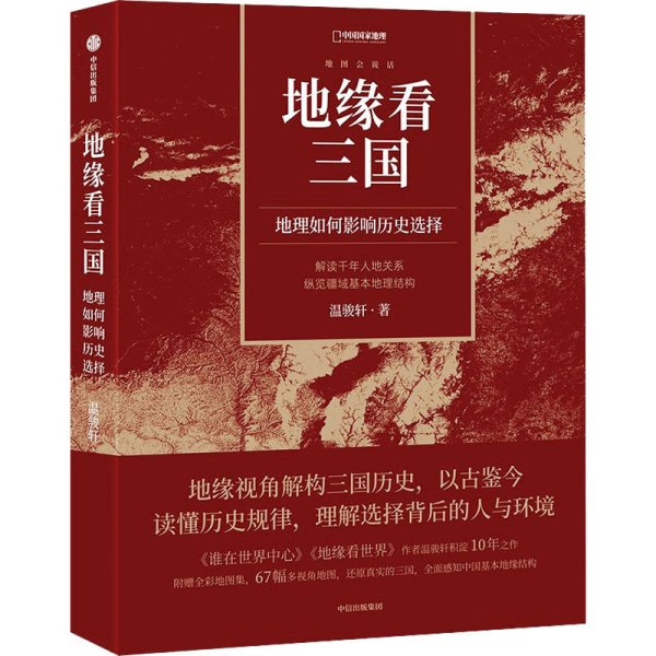 “地缘看三国:地理如何影响历史选择”以十三刺史部为切入点,以地缘视角剖析地理如何影响东汉末年至西晋初年中国的历史发展,同时为我们揭示那些脍炙人口的三国故事背后鲜为人知的地理因素。,该书配有彩色地图集,可以帮助读者直观地了解三国时代中国的地形地貌,从而加深其对于中国历史的理解。,温骏轩特有的枝蔓型叙事和平实流畅的语言风格,旁征博引的同时,循序渐进地讲述地缘与历史的关系。