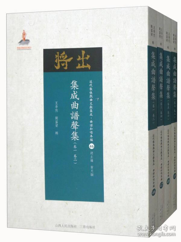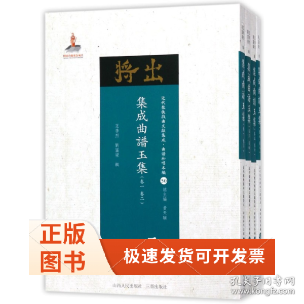 《集成曲谱》是一部戏曲唱本工尺谱选集,所收录的戏剧曲目是经过精心挑选的精品,所订工尺谱力求古今雅俗皆宜,因而,该书在考订和修正词曲上很有独到之处。全书分为“金”“声”“玉”“振”四集,本卷是其中的《集成曲谱玉集(卷1-卷8 套装共4册)/近代散佚戏曲文献集成·曲谱和唱本编(50-53)》。   王季烈(一八七