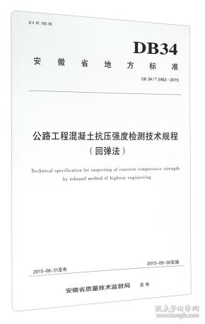 安徽省地方标准公路工程混凝土抗压强度检测技术规程:DB 32/T 2462-2015:回弹法:By redound method of highway engineering