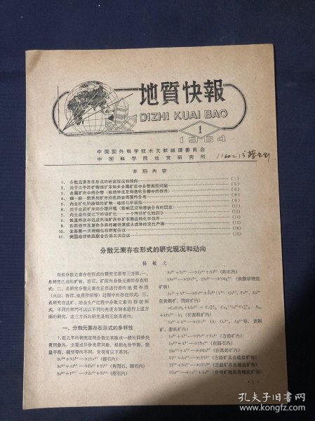 中国地质科学院地质矿产所 编著 / 北京 地质出版社 / 1978-05 / 平装