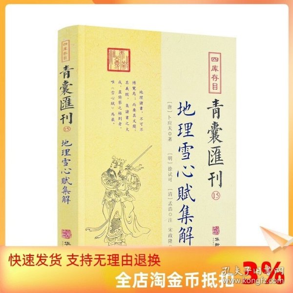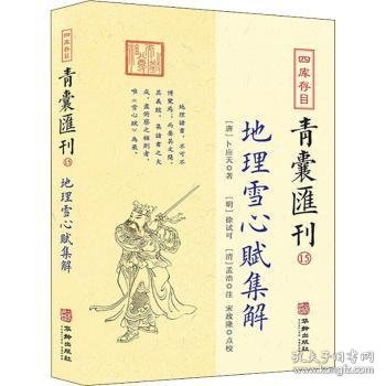 本书据《四库存目提要》,一一收集馆藏或私藏原本,以中国古代哲学思想为指导,辑录出纳经典籍的子部相关著作,简体横排,参阅诸本,点校整理,以便于当今学者对中国古代哲学的研究。是书规模宏大,征引丰富;图文并茂,收录广泛;结构严谨,体例完备;分类详细,便于检索。是研究中国古代哲学思想的重要文献资 料。本册为第十五册《地理雪心赋集解》。