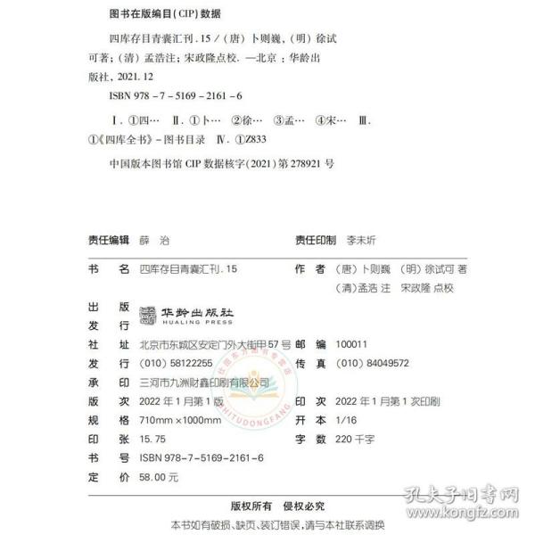 (唐)卜则巍,(明)徐试可著;[清]孟浩注;宋郑隆点校 / 华龄出版社 / 2021-11 / 平装