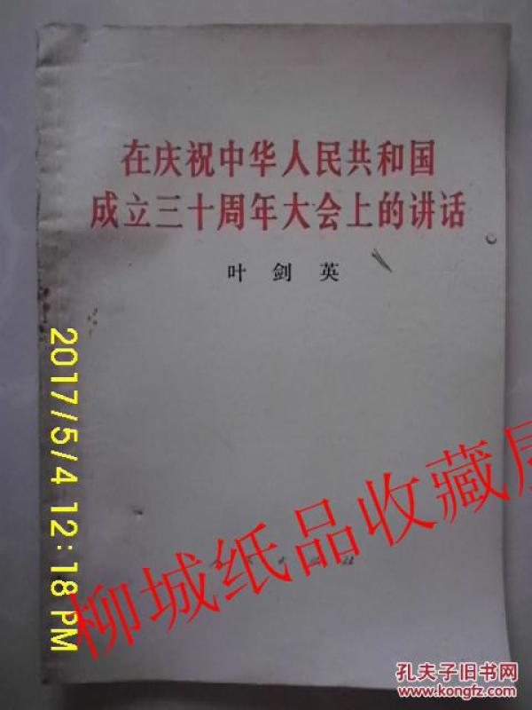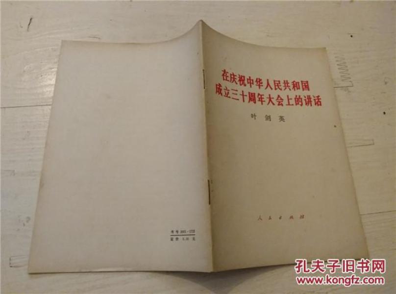 作者 叶剑英 在庆祝中华人民中华和国成立三十周年大会上的讲话