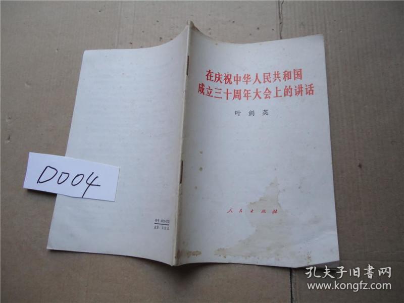 出版社 人民出版社 在庆祝中华人民共和国成立三十周年大会上的讲话
