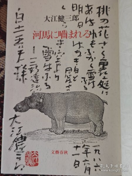 大江健三郎长题词 川端康成文学奖获奖作签本 上款为日中文化交流协会常务理事白土吾夫 签赠于一九八六年六月十一日 签赠内容为日本诗人三好达治《桃の花咲く》(桃花开)中的诗句