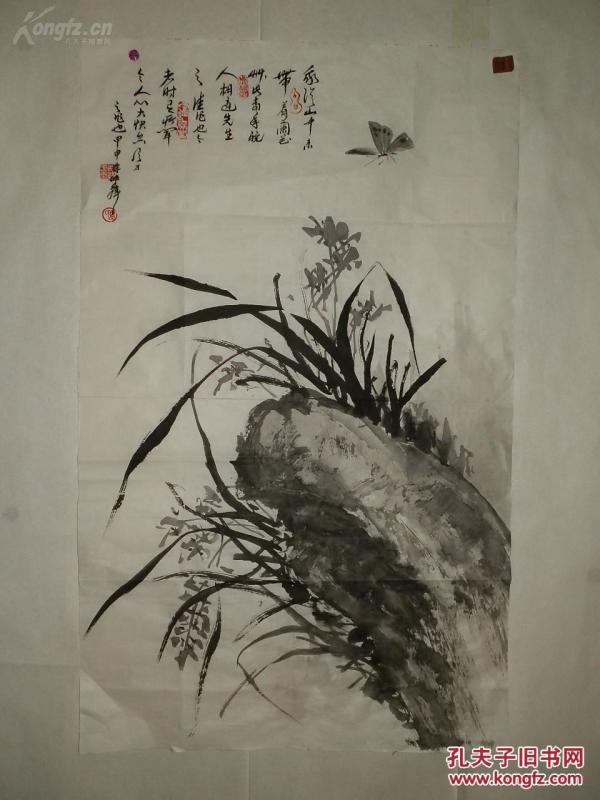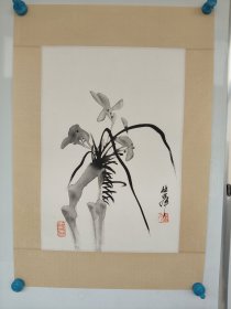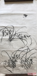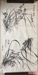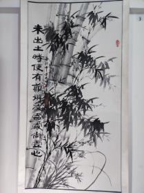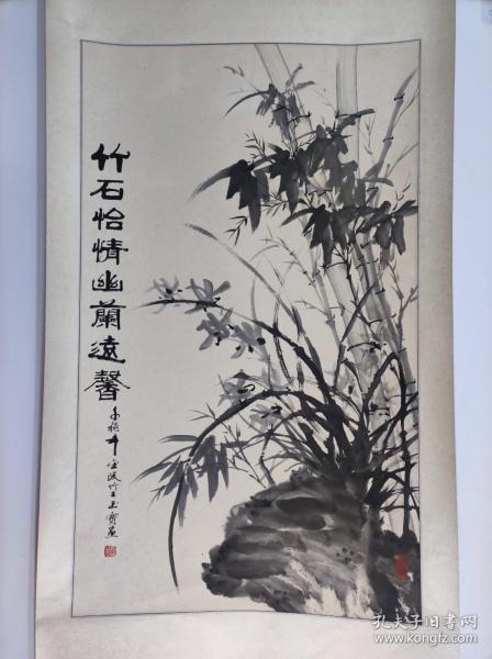作者 1152号卷轴国画写意墨竹 竹石兰花图 画心尺寸66.5×111.5cm 作者: