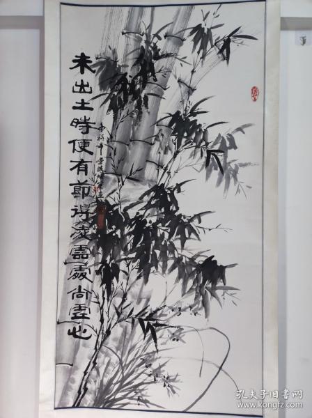 作者 1155号卷轴国画写意墨竹兰花图 未出土时便有节 得凌云处尚虚心 画心尺寸68.5×135cm 作者: