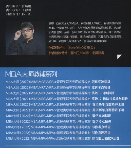 薛睿、司莹、MBA大师教材编写组 编 / 西安交通大学出版社 / 2021-03 / 平装