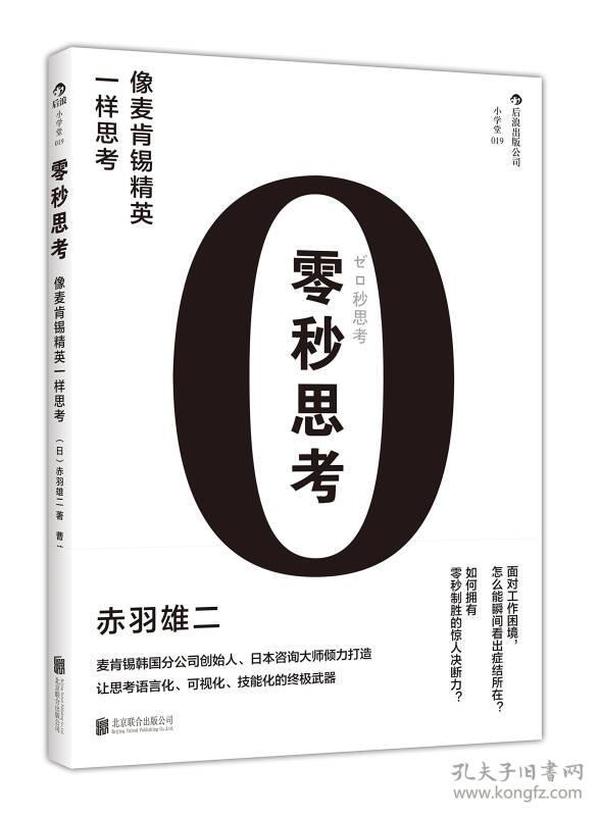 临近deadline,还在迷迷糊糊兜圈子?工作不得要领,一番折腾后又回到原点?话在嘴边却怎么都说不出口?满脑子朦胧的想法却迟迟无法动笔写企划案?很多人都会面临这种工作困境,但至于怎么改变却总是找不到好办法。,《零秒思考》教你的就是把心中想法落实到语言和实践中的具体做法-----零秒思考。,作者在麦肯锡公司的14年中,参与了企业的经营改革,深知员工的战斗力会很大程度上左右一个公司