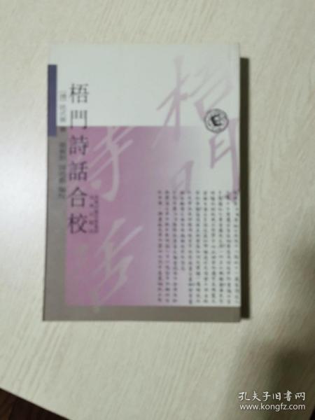 《梧门诗话合校》是一部诗话著作,书中记录了不少乾嘉时期诗人的诗作与逸事,颇能反映这个时期诗坛的状况,对研究清人诗歌创作及诗歌理论有一定的帮助。  《梧门诗话》是清人法式善(一七五三—一八一三)撰写的一种诗话著作。法式善原名军昌,字开文,号时帆,又号梧门、诗龛、陶卢。蒙古乌尔济氏,内务府正黄旗人。清乾隆四十五年(一八七〇)进士后因皇帝赏识,赐改今名“法式善”即满语“勤勉”之意。