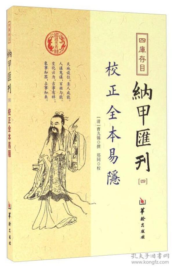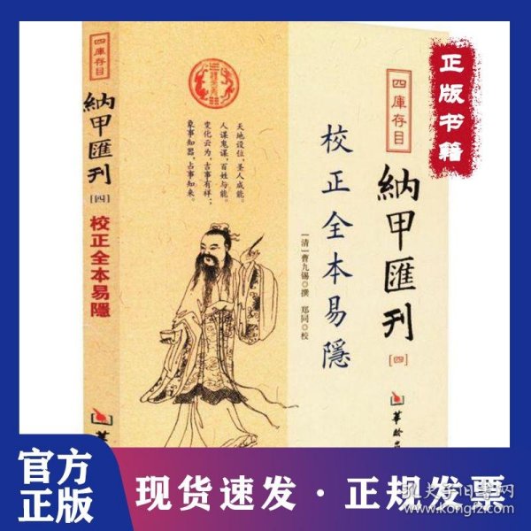 《四库存目纳甲汇刊(四) 校正全本易隐》收集馆藏或私藏原本,辑录出纳甲法相关典籍、文献、引用语句,便于当今学者对中国古代哲学的研究。《四库存目纳甲汇刊(四) 校正全本易隐》规模宏大,征引丰富;图文并茂,收录广泛;结构严谨,体例完备;分类详细,便于检索,是研究中国古代哲学思想的重要文献资 料。   曹九锡,清初