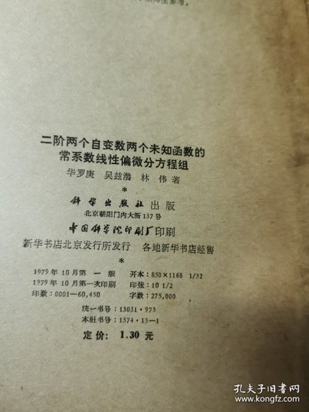 作者 二阶两个自变数两个未知函数系数线性偏微分方程组 华罗庚