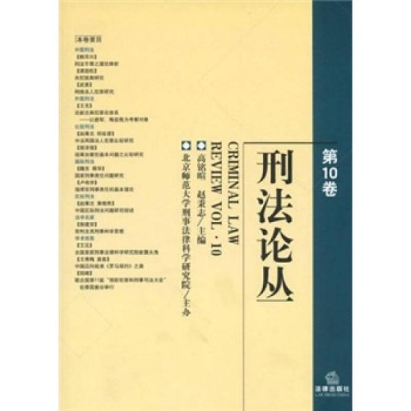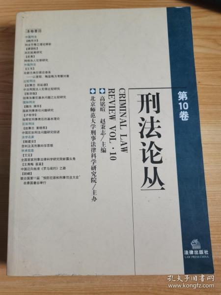 《刑法论丛》第10卷共载文19篇,秉承本论丛业已形成的固定风格,所收录的论文在一定程度上反映了过去一年中我国刑法学界学者、特别是中青年刑法学者们付出的不懈努力。内容涵括中国刑法学、外国刑法学、比较刑法学、国际刑法学与区际刑法学等刑法学科诸多领域。既有关涉刑法适用、刑法平等理论等基础性问题的深层次理论研究,又有针对共犯脱离、网络杀人犯罪等实务问题所进行的开拓性探索。,其中,赵秉志