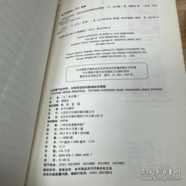 太阳景气经济学:太阳活动如何影响经济周期(85品16开2012年1版1印6000册181页17万字)60624