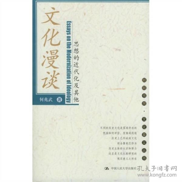 《文化漫谈:思想的近代化及其他》大部分篇幅是何兆武先生在清华大学针对本科生有关文化问题的谈话与讲演,主要是探讨中国思想文化近代化历程。,《文化漫谈:思想的近代化及其他》共分九讲,每讲集中探讨一个问题,从对西方文化史的介绍切入,对中西文化的比较、中国社会的近(现)代化进程、传统思维与近代科学、中西文化交流,以及中国与世界文化的发展趋势等问题进行了深入浅出的分析和讲解,涉及的知识面