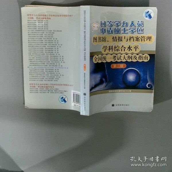 同等学力人员申请硕士学位图书馆、情报与档案管理学科综合水平全国统一考试大纲及指南(第2版)9787040256642