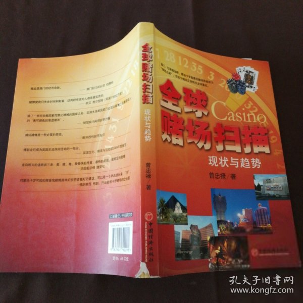 按照全球视野理论,任何机会或威胁如果没有进入人们的视野,再好的机会也得不到利用;再大的威胁,也不会有事前的防备措施。因此,撰写该书的第二个目的是把世界相关产业带入我国居民的视野,使人们对该产业带来的机会或威胁有更清楚的认识。  笔者对赌场和博彩产业的发展持中性态度,对赌场和博彩产业本身是好是坏没有有意评论。《全球赌场扫描:现状与趋势》的目的只是尽可能地提供事实和数据,帮助人们认