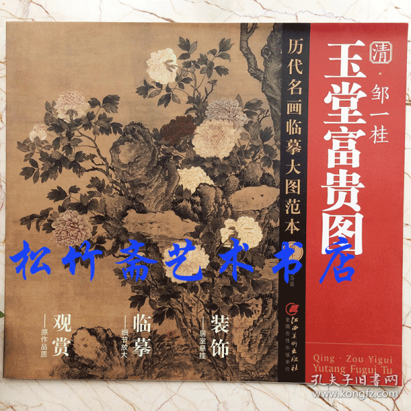 《玉堂富贵图》,立轴,绢本,设色,纵 197 厘米,横 96 厘米,现藏于辽宁博物馆。 此图所绘玉兰寓意玉堂,牡丹寓意富贵,玉兰洁白无瑕,海棠淡紫娇羞,牡丹色彩纷繁,典雅高贵。牡丹、玉兰、海棠、杜鹃,布满全幅,最后还用石青衬底。 牡丹敷以淡粉,用重粉点染边缘,显得晶莹剔透、庄重典雅。整个画面热烈而秀雅,韵味十足。据作品落款可知,此作是邹一桂古稀之年所绘,所绘牡丹及玉兰,造型严谨,可见其写生功力过人