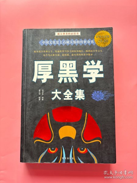 全书分上、下两篇,深度挖掘李宗吾厚黑学精髓的基础上,通过精炼的要点和大量历史上正面或反面的事例,归纳、诠释了立足社会、为人处世的厚黑之道。下篇“全本厚黑学”收录了李宗吾先生的全部经典著作,包括厚黑原理、厚黑丛话、我对圣人之怀疑、心理与力学、迂老自述、我的思想系统等十几部作品,首次将李宗吾的完整手稿整理出版。在附录部分增加了林语堂、柏杨、南怀瑾等名家序言,帮助读者深入解读这一在海内外影响深远的学说。