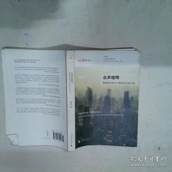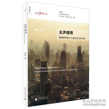 《众声喧哗:网络时代的个人表达与公共讨论》触及了网络政治学中的一个重大话题——网络空间中的私域与公域。随着科技的进步,在信息时代的开端,公与私的含义和边界都出现了不容忽视的游移。《众声喧哗:网络时代的个人表达与公共讨论》主要探讨,经由新的共有媒体的作用,传统的公私两分如何在社会和政治的双重压力下产生消长和易位。作者把各种基于数字技术、集制作者/销售者/消费者于一体、消解了传统的