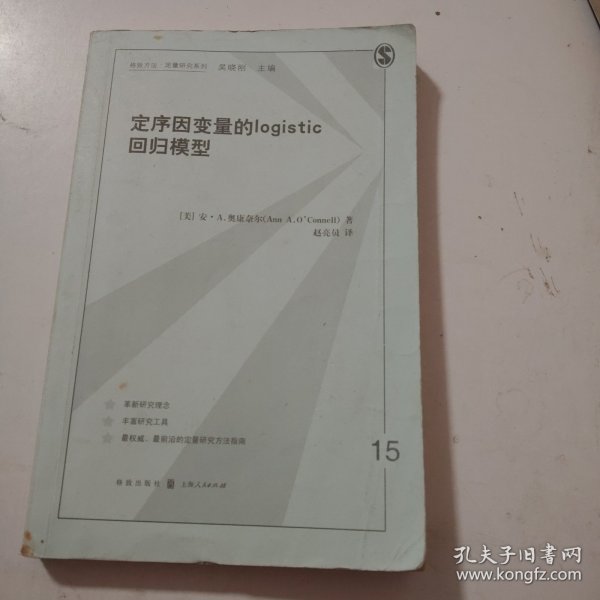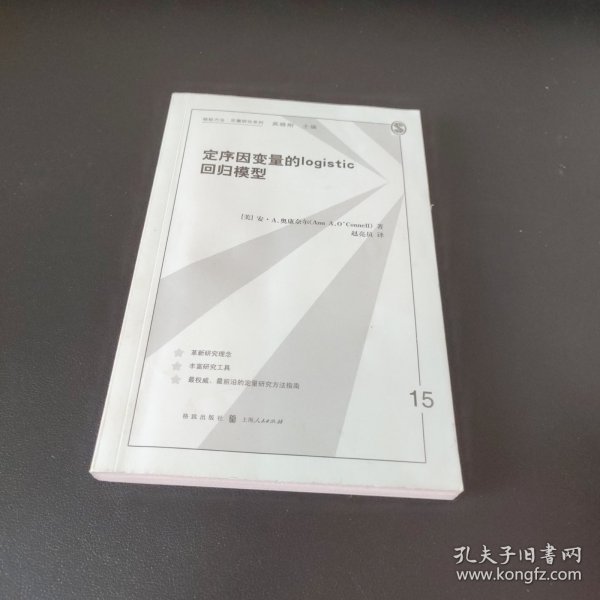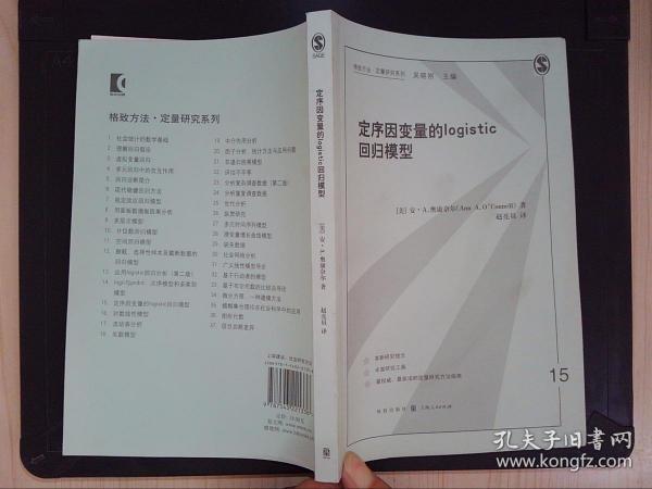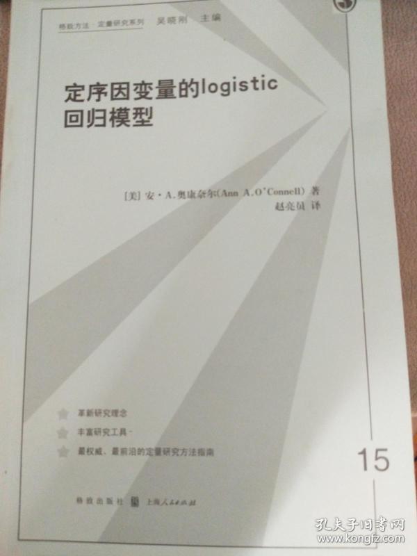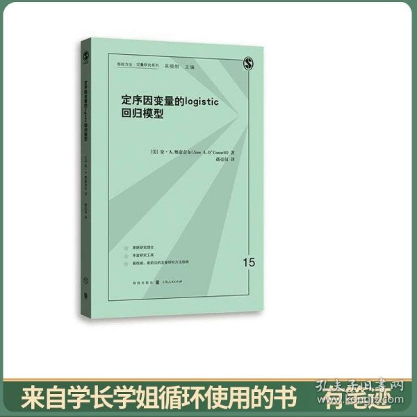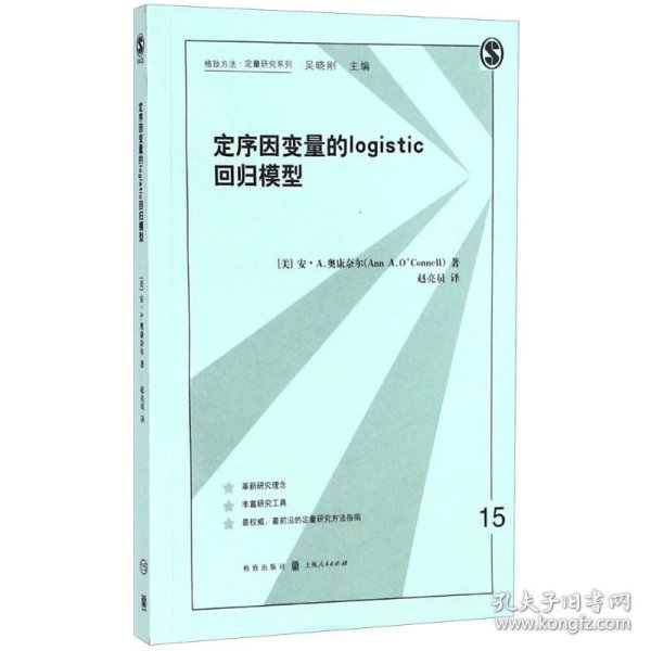 《定序因变量的logistic回归模型/格致方法定量研究系列》编著者安·A.奥康奈尔。 本书以展示来自儿童早期追踪研究的实例开始,其中的主要因变量虽然不是李克特量表,但其对早期读写和算术熟练度的测量还是定序的。作者进而回顾了logistic回归。并接着呈现三个核心主题章节:累积或比例比数模型(curnulative or proportional odds model),连续比