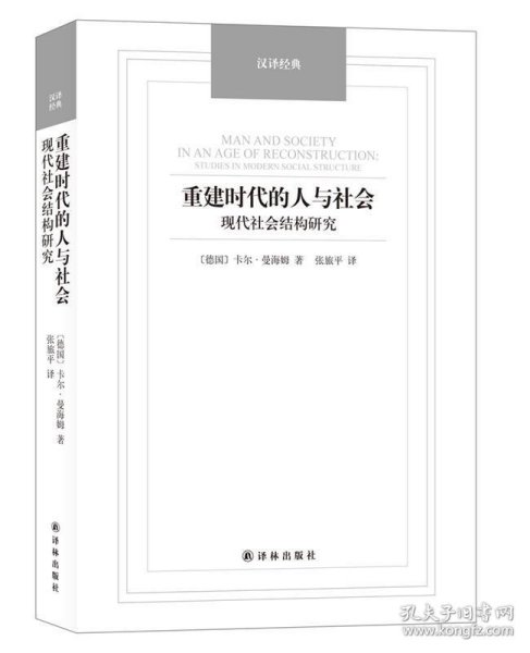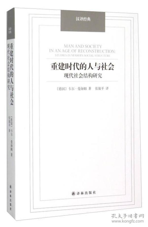 《汉译经典:重建时代的人与社会(现代社会结构研究)》为卡尔·曼海姆的重要社会学著作之一。,《汉译经典:重建时代的人与社会(现代社会结构研究)》作者在书中对人格的塑造和社会组织范围的失调进行了深入研究。,他站在欧洲大陆和盎格鲁-撒克逊的角度讨论了自由主义和民主的危机,他指出:现代社会失调,出现文化危机的主要原因在于自由放任原则和无计划调节原则间的冲突。他认为,没有人格的转变,社会