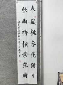 题名:B11419号书法 春风桃李花开日 秋雨梧桐叶落时 138×68cm 作者:董玉琴